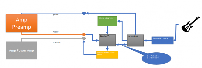 oui même un line selector ou un looper 2 boucles devrait fonctionner. Sauf que je perds les effets de modulation dans le dernier cas.