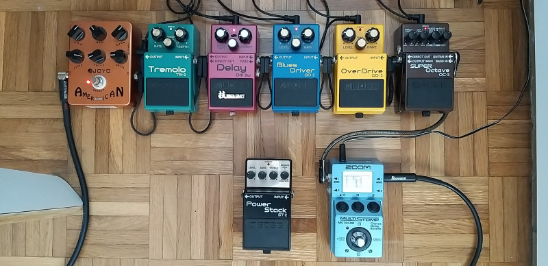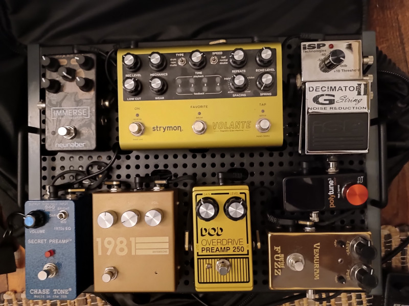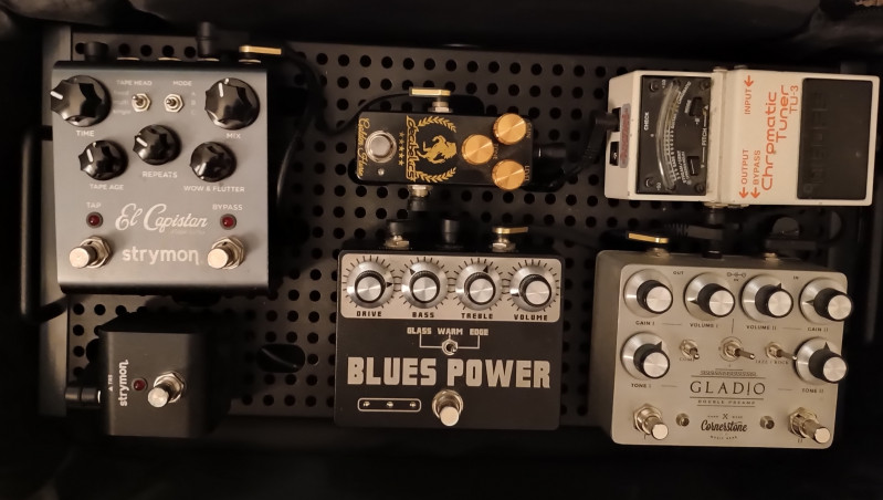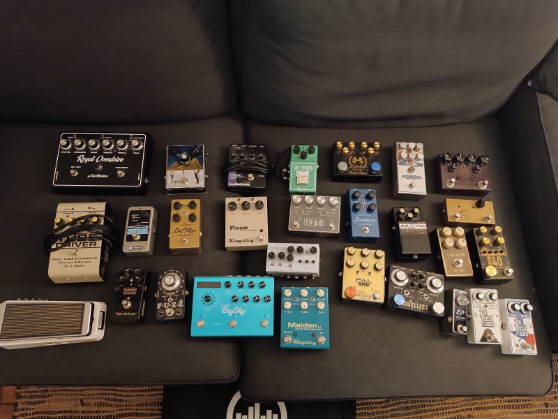 Cela fait des mois que j'ai arrêté les échanges/achats, je ne vois plus l'intérêt des marques qui sortent chaque mois la nouvelle pédale qui va vraiment sonner Marshall mieux qu'avant, ou le éniéme SRV in a box. D'autant plus que les pros ont souvent un rig simple en termes de pédale haha