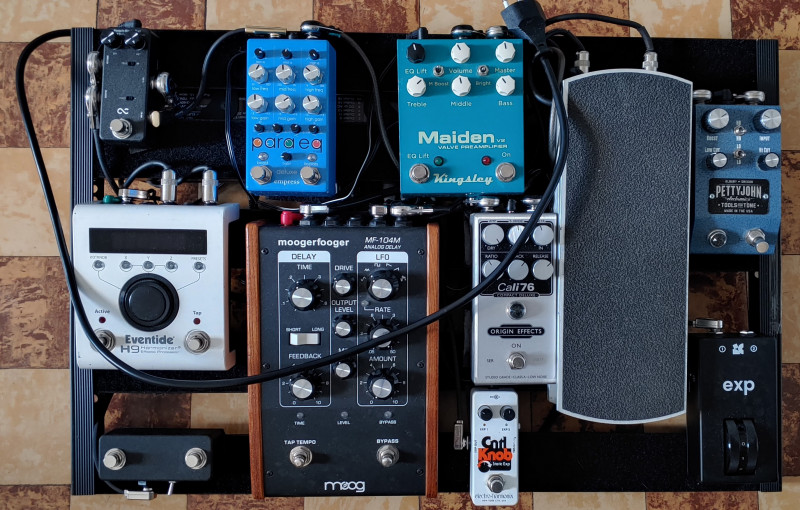 Sinon, le reste c'est tout pour sculpter le son. Le but étant d'avoir un son réglés aux petits oignons. Je joue dans un groupe (rock) avec nos propres compositions, donc ma quête du son, c'est d'avoir mon propre son. Et là, franchement, promesse d'alcoolique, je ne vois pas pourquoi ça bougerait. Je suis super content. Il y a des petits détails d'aménagement des places des pédales qui continuent de m'agacer, mais je ne vois pas comment faire autrement.