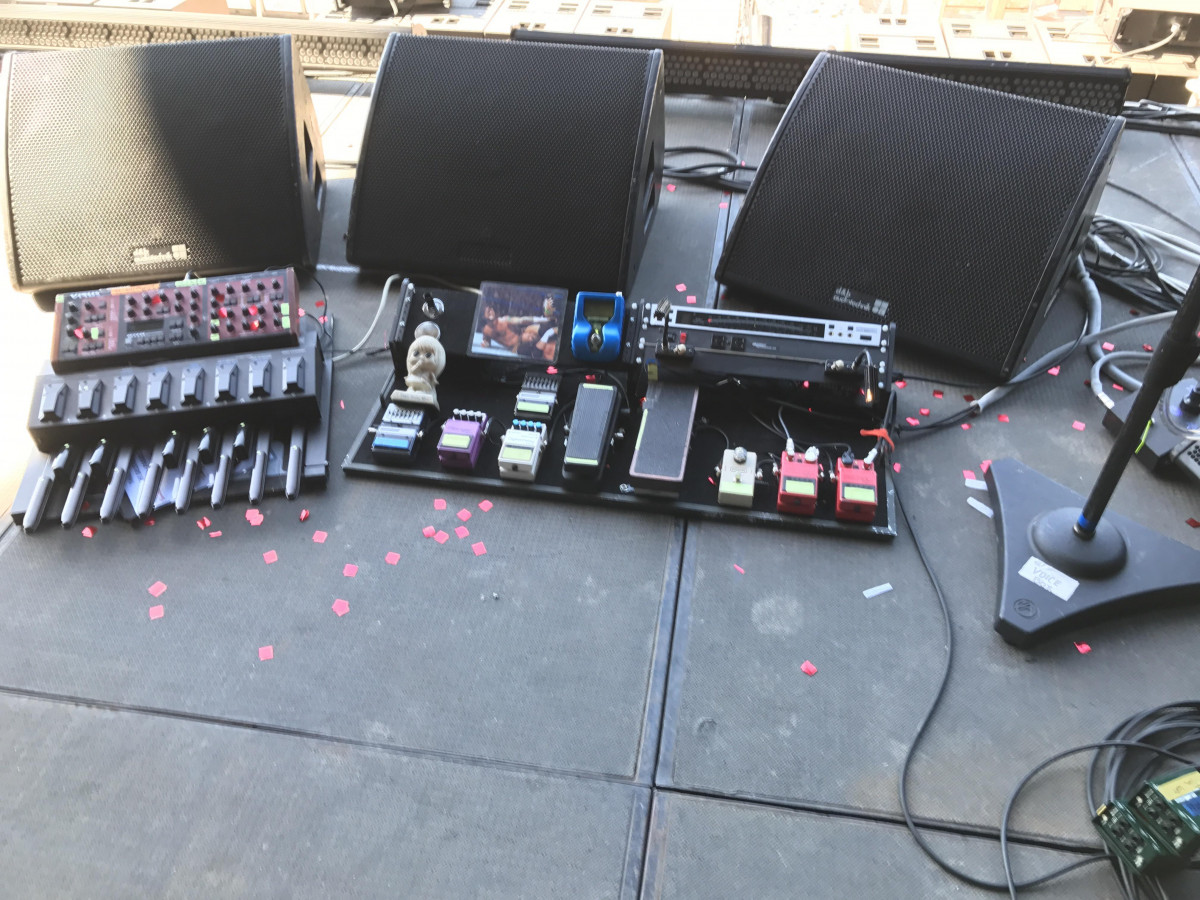 Une partie des pédales sont pour avoir ma H9 en parrallèle et pour controler le delay Moog. J'exploite à fond mon delay, grace aux voltages control, j'arrive à passer du slap back, chorus à des delay long ou une sorte de sustainer