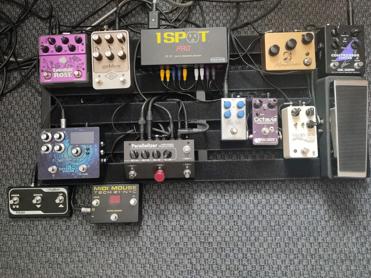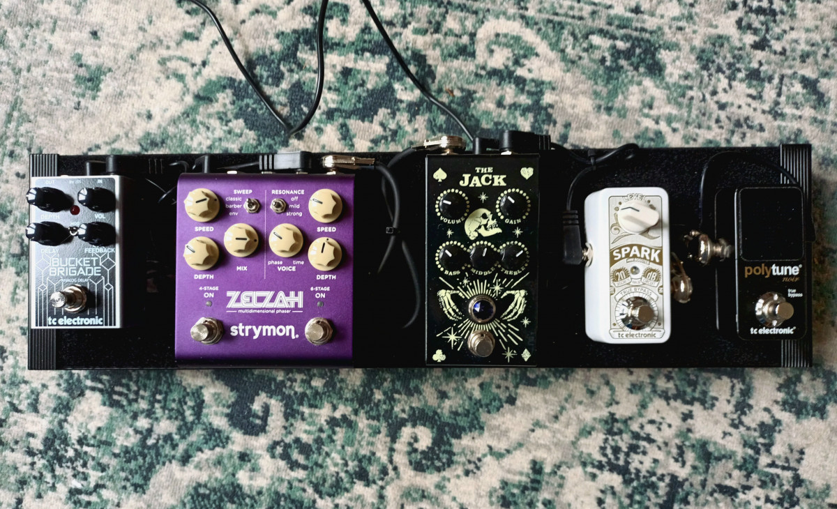 C'est un bon clone de Carbon Copy avec un twist (possibilité de régler la profondeur de la modulation en surface). Seul défaut (outre le fait qu'elle est franchement assez moche, cette pédale, soyons honnête ...) : sur mon exemplaire, la vis a tellement été forcée comme une brute par la personne qui l'a montée que je n'ai pas pu l'ouvrir (je n'ai fait que défoncer le pas de vis un peu plus). Donc, je peux pas régler la vitesse de l'effet. Bon, je m'en fous un peu car la modulation ne m'intéresse pas des masses, l'utilisant comme delay assez court pour donner un effet de slap-back / reverb courte qui grossit super bien le son. J'ai piqué le réglage de la Carbon Copy de Kurt Vile car c'était exactement le son que je cherchais et ça marche nickel comme ça.