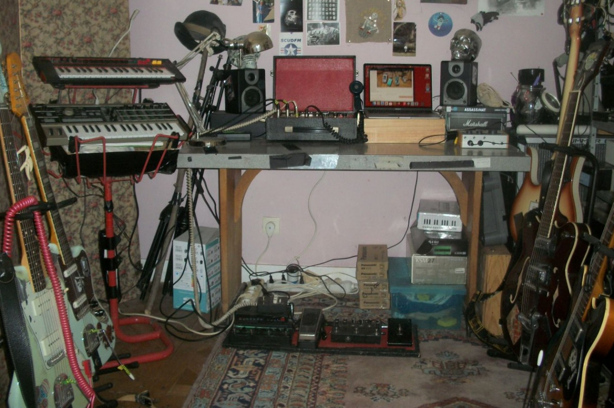 Je suppose qu'il y a de droite a gauche un boost DIY /Le commandant cousteau/un trem/ une de tes fuzz DIY et la surfy truc... Dans un ampli?? Ou direct interface/ordi? Sinon c'est quoi l'homme grenouille??
