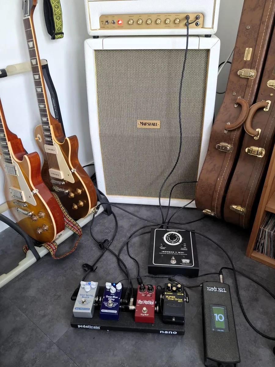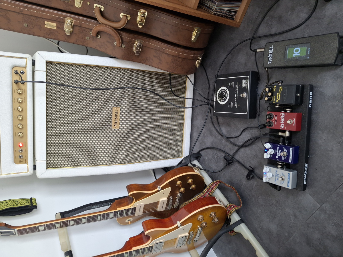 La SD-1 c'est la seule overdrive Boss que je n'ai jamais essayée, surement à tort. Je n'aime pas les Tube Screamer. J'ai une Maxon 808 utilisée avec peu de gain sur simulation crunch, de temps en temps.