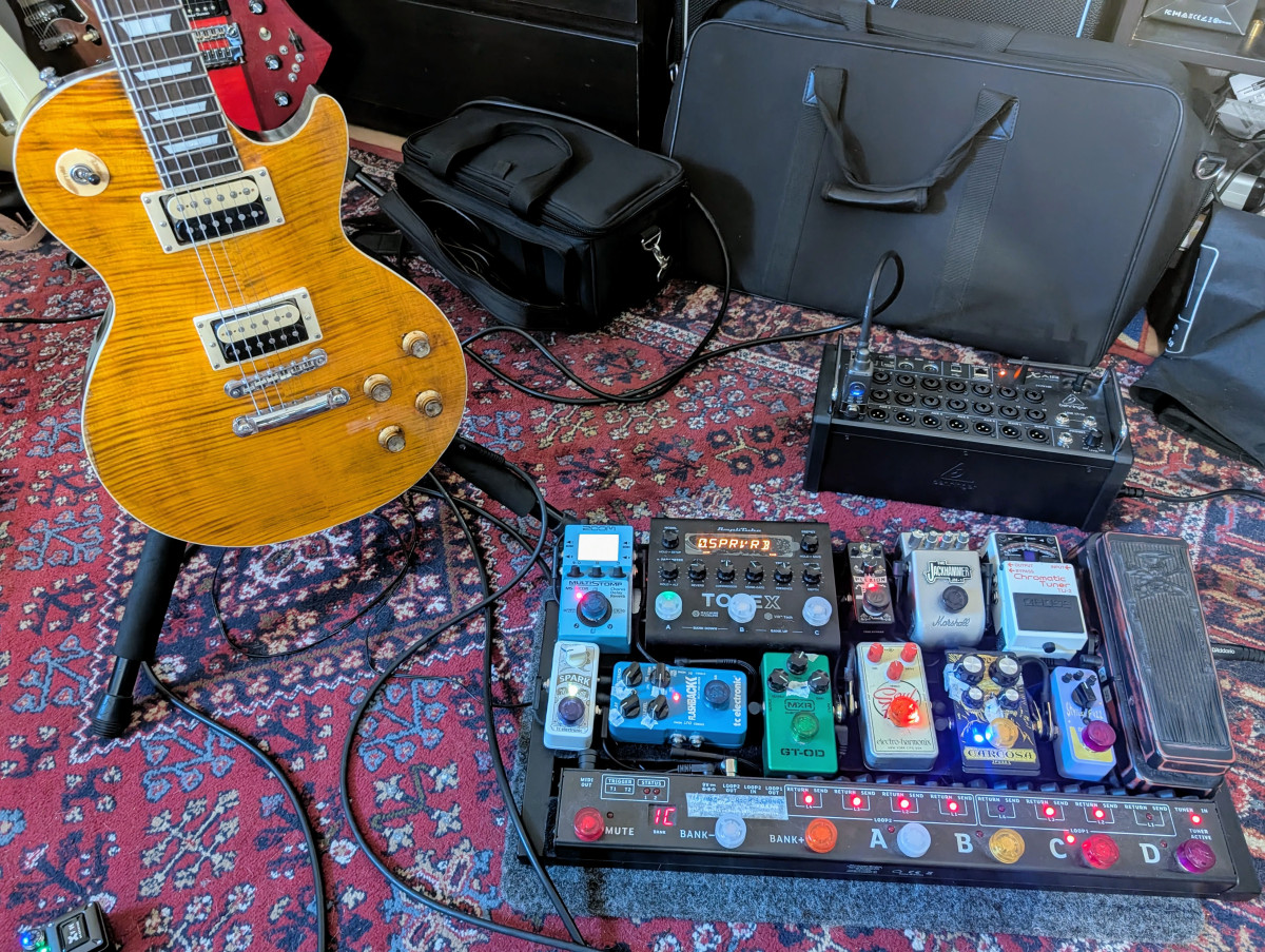 Tiens, pour mon acoustique, je me suis procuré un looper VALETON VLP-200 (qui permet de choisir entre deux boucles qu'on alterne en anticipant la fin de la boucle en cours, ou qu'on ajoute l'une sur l'autre en overdub). Malheureusement, je l'ai acheté juste avant la sortie du VLP-400 qui est plus grand et semble plus pratique à utiliser.