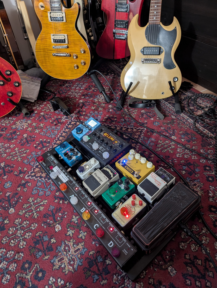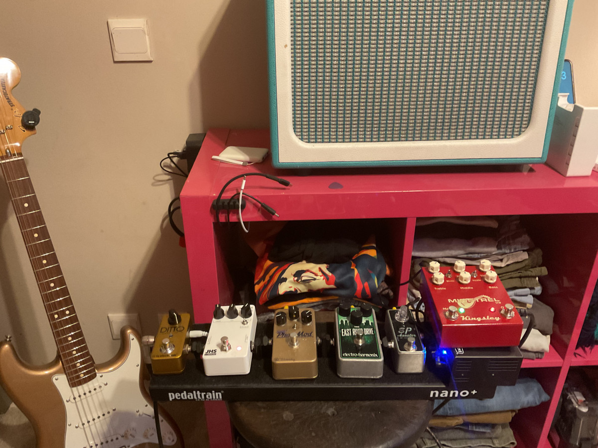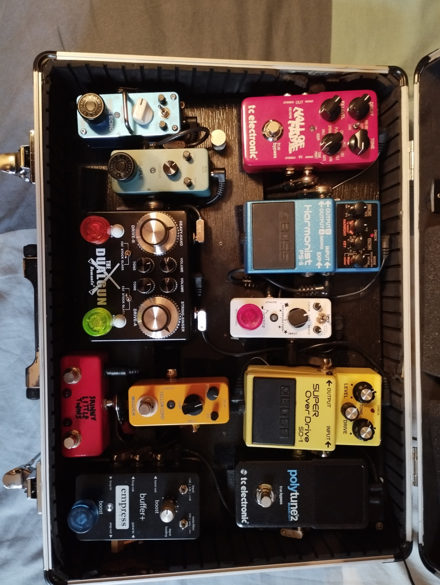 Et binh voilà pour moi, j'ai remis la Boss EQ7 pour les solos (que je booste avec la mini spark car l'EQ7 souffle trop) mais un jour je m'occuperai de ce problème pour gagner une place.