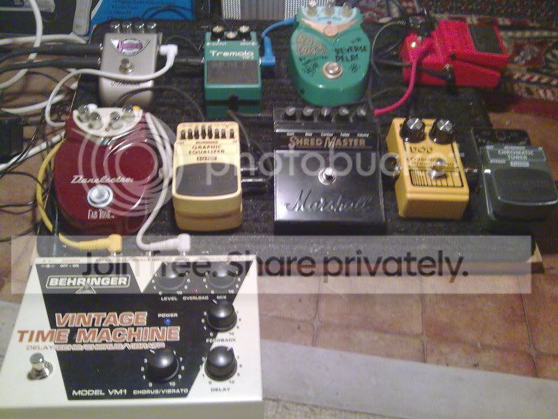 Eupat, il y a de chouettes trucs dans ton pedal-board . Pourquoi deux tremolo? Et le delay Danelectro, il vaut quoi?