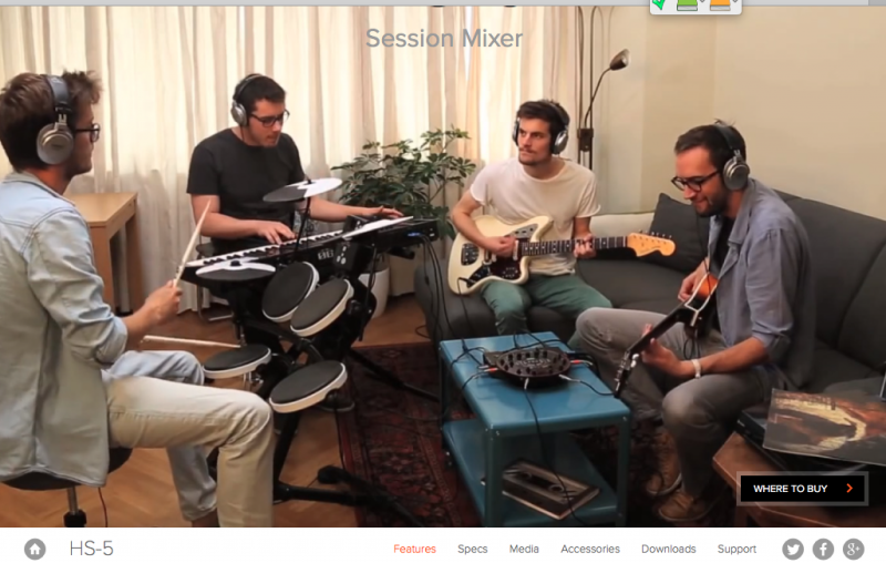 La HS-5 est une table de mixage numérique qui permet à cinq musiciens de répéter et de jouer ensemble au casque. Jusqu’à quatre d’entre eux peuvent ajuster