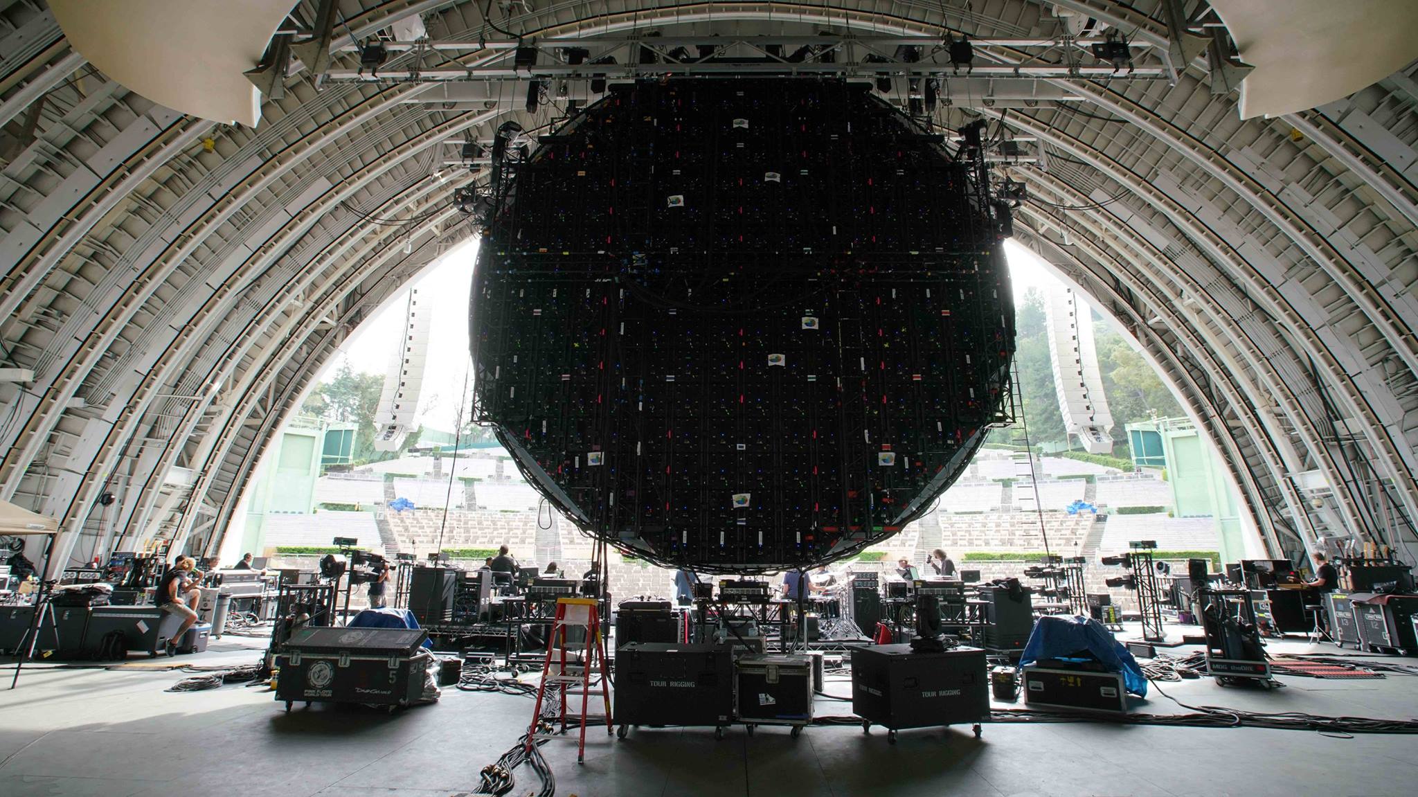 Tout comme le fait qu'il n'a pas visiblement embarqué que deux Hiwatt Custom 50 Head au lieu des têtes habituelles.