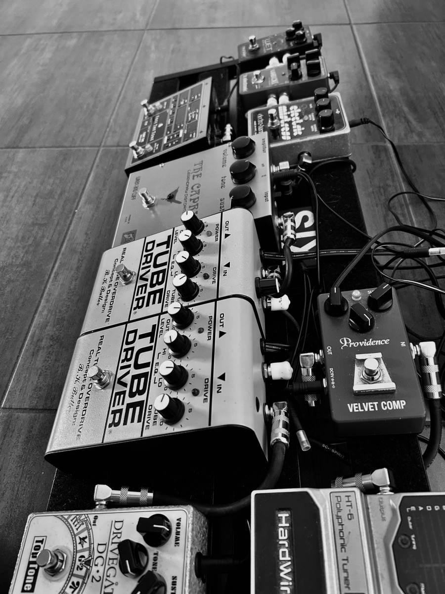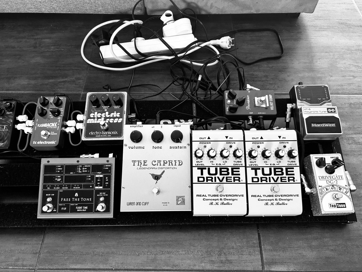 Salut à tous ! Pour ma part, je joue dans un tribute Pink Floyd depuis 2016, et pour des raisons pratiques, j'ai utilisé uniquement des multieffets pour ça : Axe-Fx II, Axe-Fx III et Kemper sur les différents shows que j'ai donnés. Récemment, j'en ai fait une version pour le Tonex, qui est très limité en termes d'effets (manque de finesse pour le delai, un seul delai/une seule modulation à la fois etc.), malgré tout, on s'en sort, mais je conçois bien qu'on puisse être tenté d'y ajouter des pédales externes.