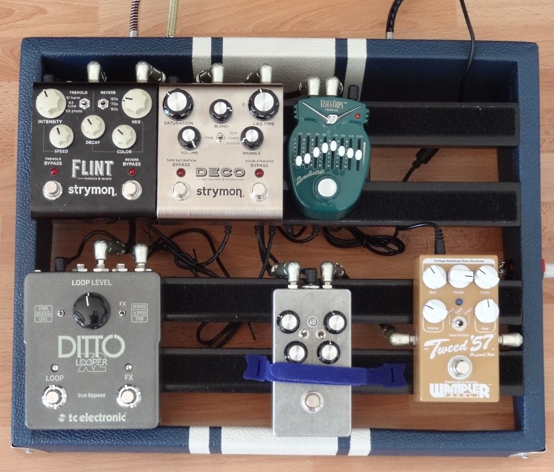 J'ai testé avec ma Gibson J45 hier soir sur des morceaux en fingerpicking, ben ça le fait aussi. Samples (description des effets utilisés sur soundcloud), son pas terrible car le micro de mon appareil photo rajoute de la saturation. Les pains sont offerts par la maison.