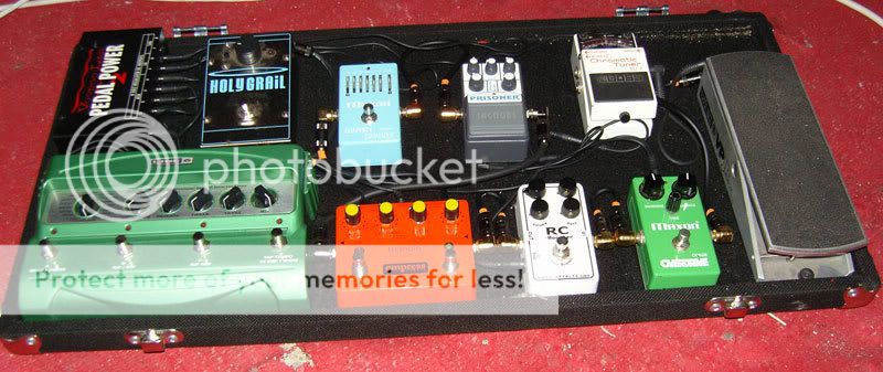 J'ai mis du temps, mais voici une photo (un peu pourrie, certes) de mon pedalboard "fini":