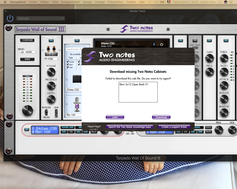 Salut à tous, salut Guillaume, bonne année 2018 avec je l'espère de bonnes surprises du côté de Two Notes (Guillaume on se connait un peu, il y a un indice dans la photo ci-dessous). J'ai fais péter un préamp "Le Lead", mon dieu que ça crache