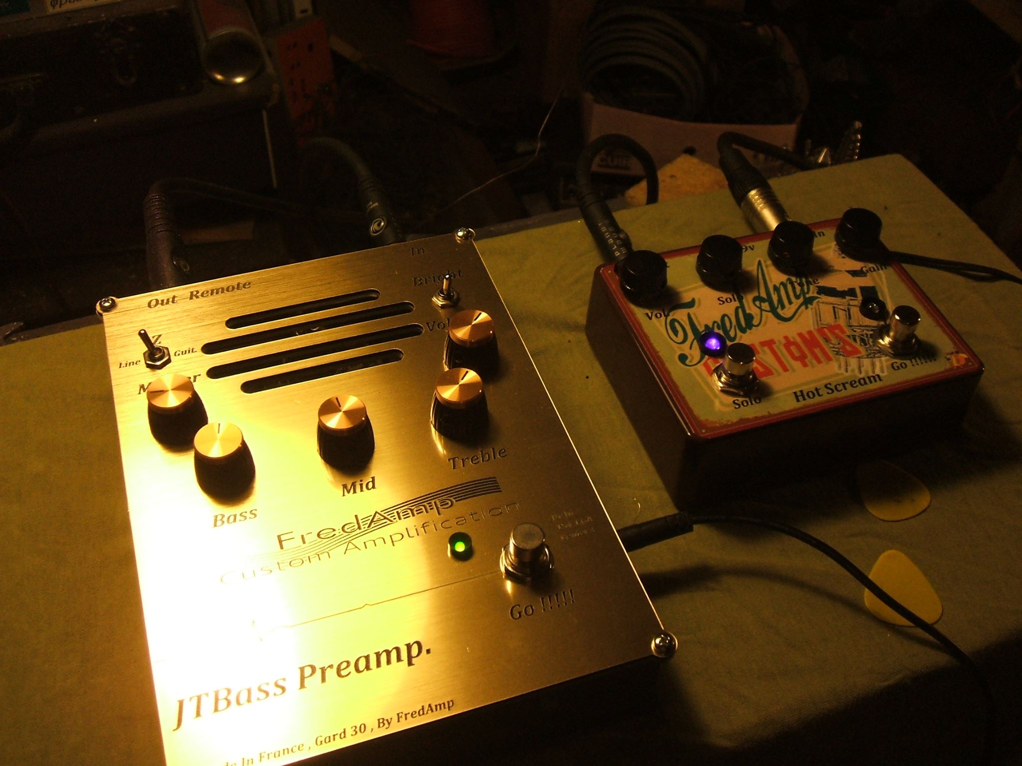 C'est globalement le même truc que je joue plusieurs fois, histoire d'avoir la même réf de comparaison. Rythmique en micro chevalet, puis un peu de micro manche (Telecaster).