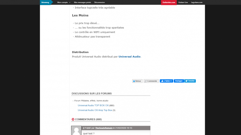 Et effectivement pour le prix du OX (qui n'est pas "dans la norme", c'est un des plus chers) et le prestige de universal audio, j'attendais un certain effet "wow" soit au niveau des fonctionnalités soit au niveau du son...
