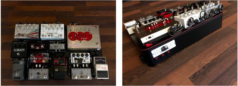 J’ai déjà fait beaucoup de pedalboards un peu loufoques pour certains clients. Je dois avouer que je rêverais de fabriquer une fois mon propre pedalboard avec un accordeur intégré et que je puisse le garder plus de 3 mois sans rien changer dessus !