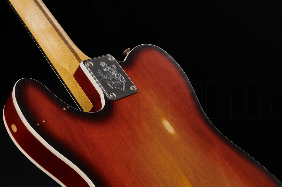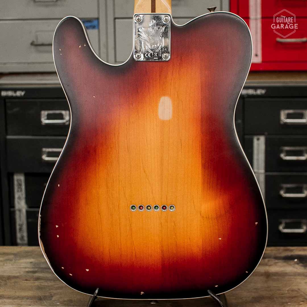 La Jason Isbell Custom Telecaster made in Mexico possède un corps en aulne recouvert d’une finition Road Worn Chocolate Sunburst nitrocellulosique. Le manche en érable est sculpté selon le profil Mid ‘60s « c », il est équipé d’une touche rapportée en palissandre. Cette dernière est sertie de 21 frettes Narrow Tall pour un diapason de 25.5 pouces. Son rayon est de 7.25 pouces, très vintage donc. Le vernis du manche est aussi nitrocellulosique.