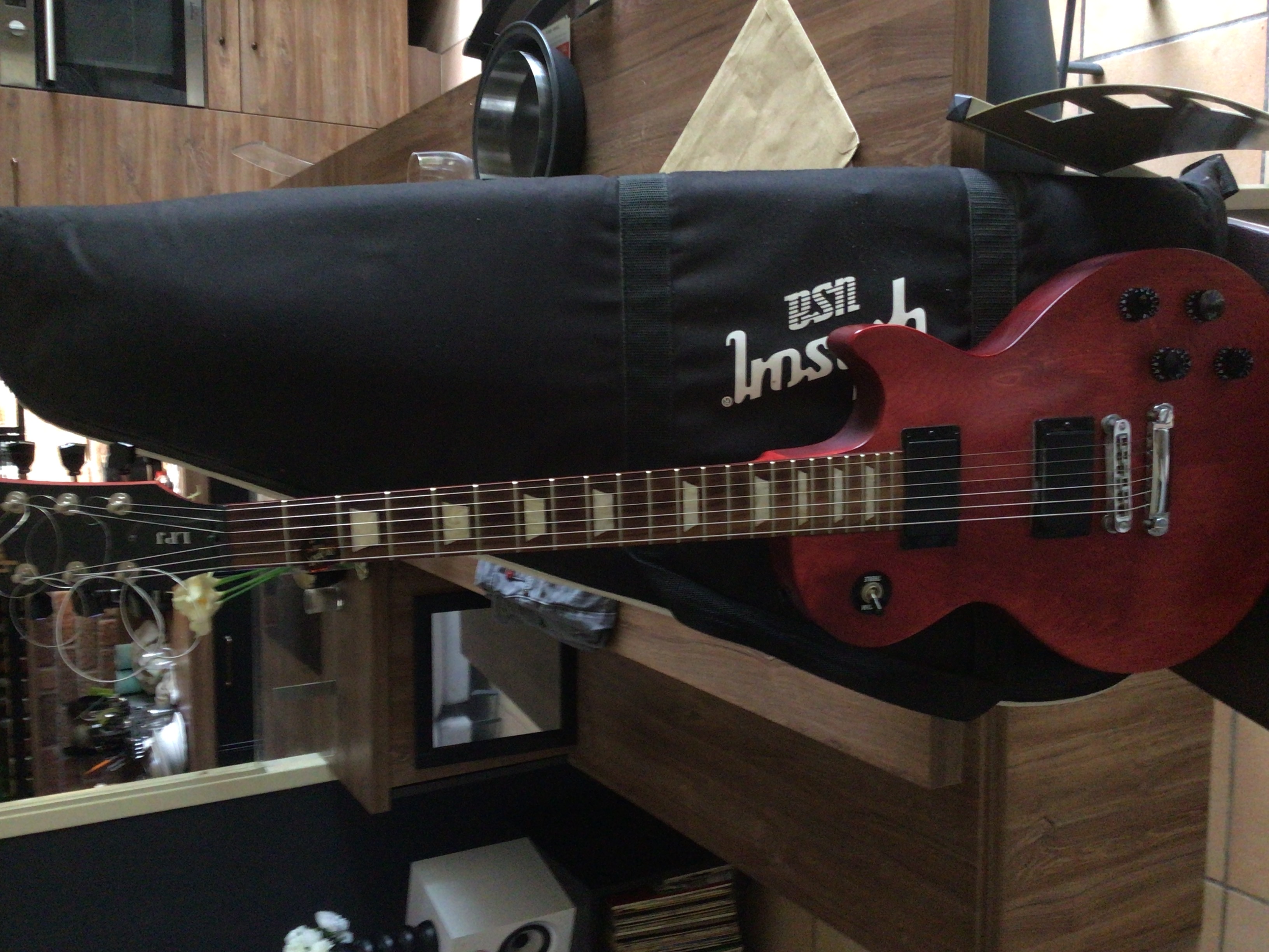 bonjour vends car peu servie gibson us les paul junior cherry etat neuf tout ok av3c housse gibson usa d’origine