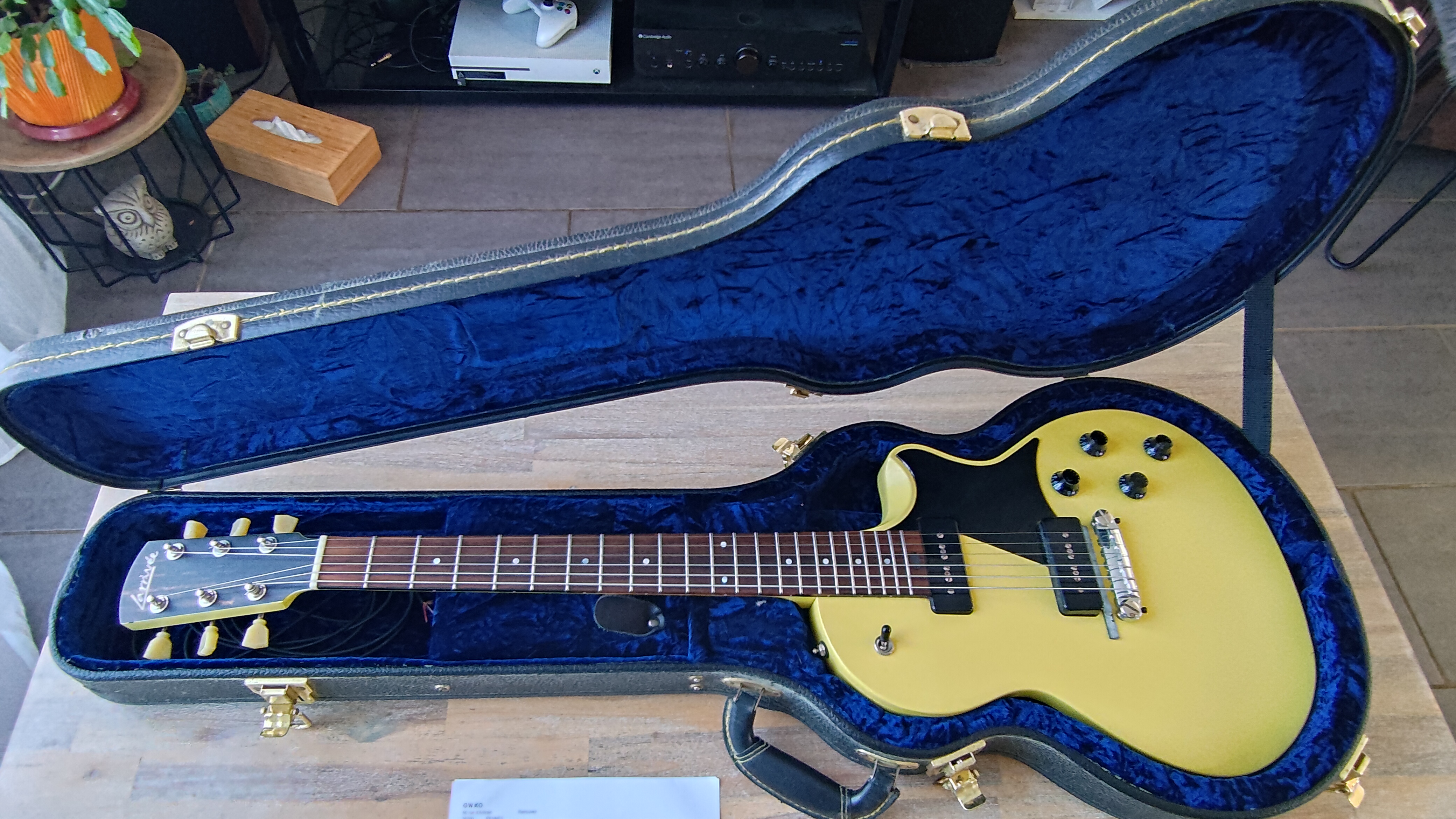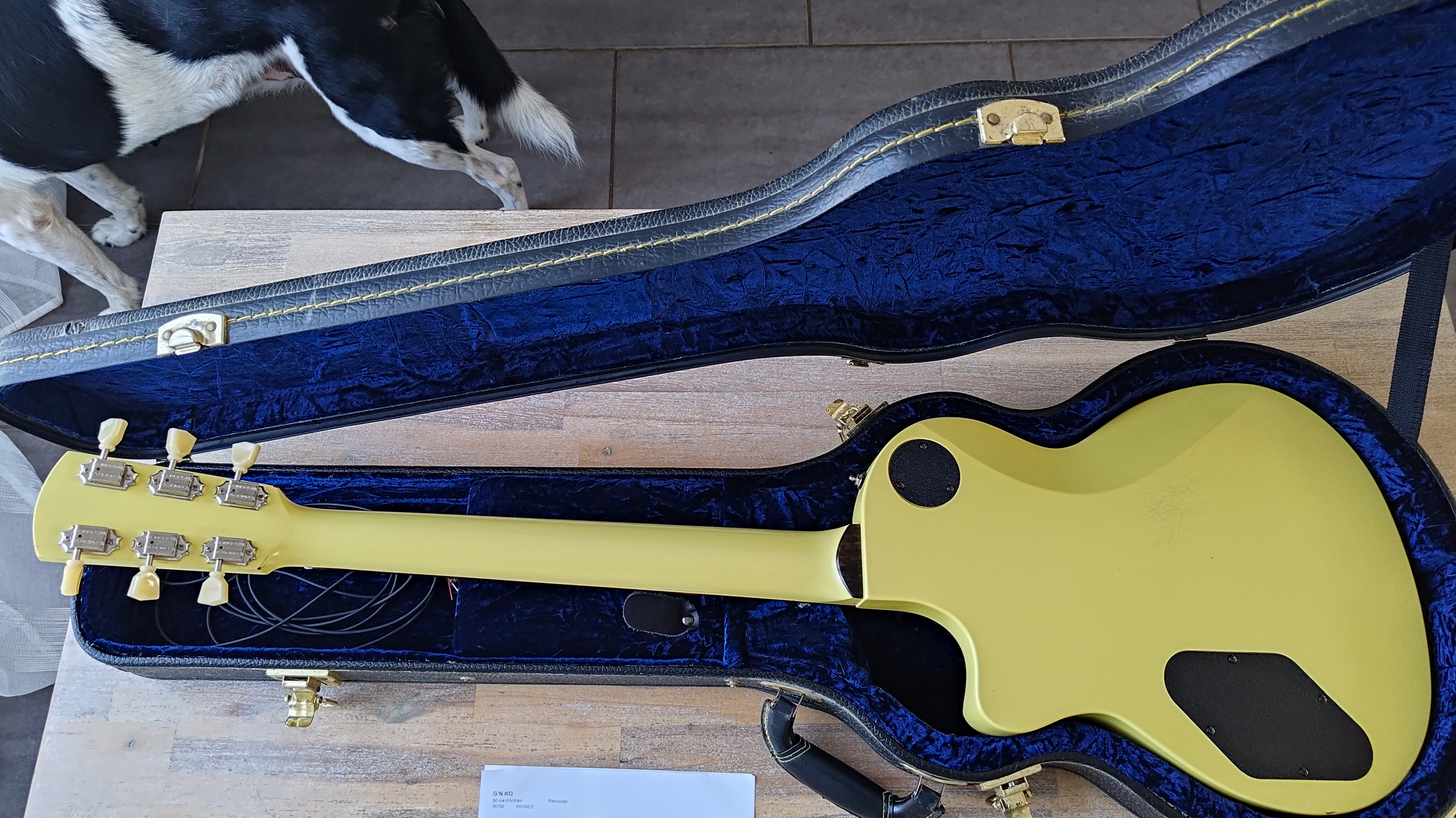 Réglée récemment par un luthier pro en Drop Down Tuning (11-54) pour jouer des rythmiques à la Malcom Young, période Bon Scott.