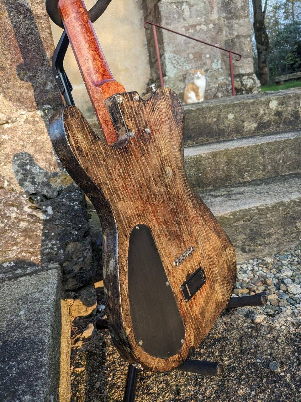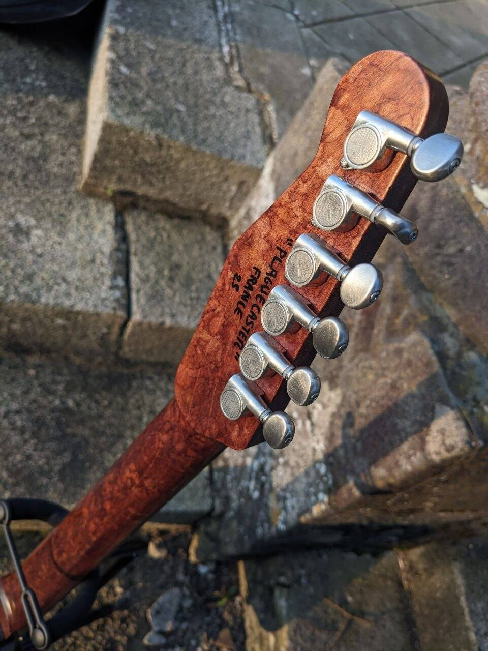 Le micro envoi très très fort. C’est un micro a triple aimants céramiques (comme le warpig céramique chez Bare Knuckle Pickups). Pas d’aigus agaçants comme sur d’autres micros céramiques, et pleins de medium et bas médium.